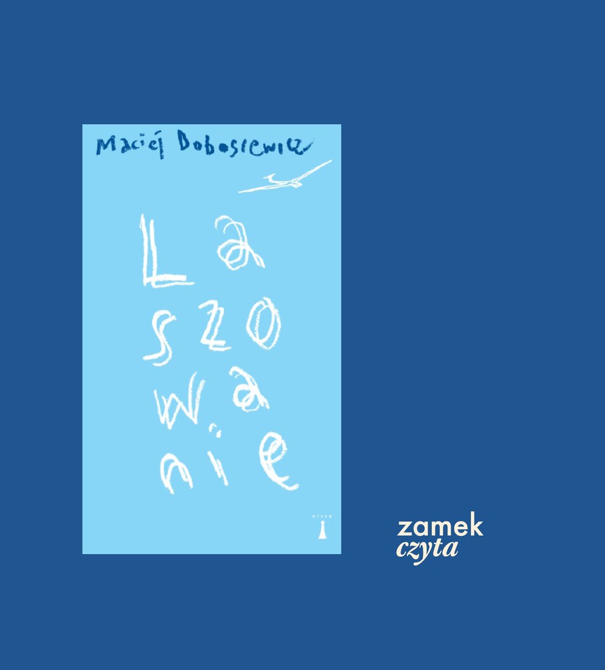 Po lewej stronie w centrum widoczna jest błękitna okładka książki pt. „Laszowanie” i nazwisko autora Maciej Dobosiewicz.