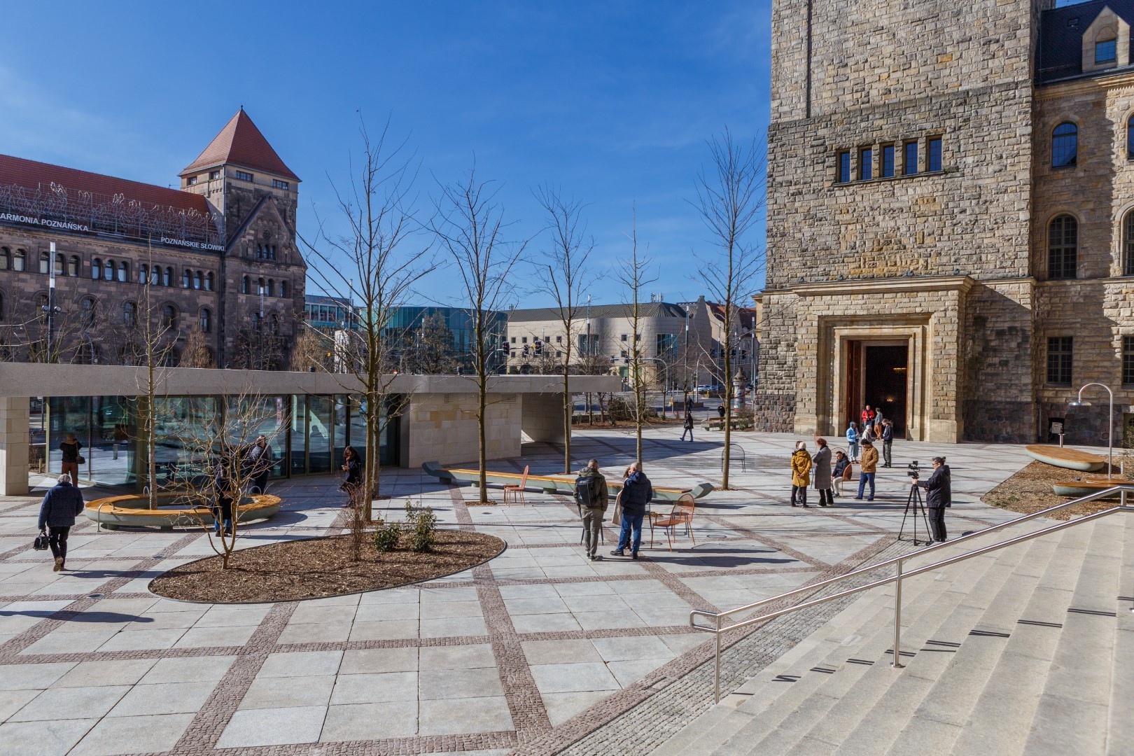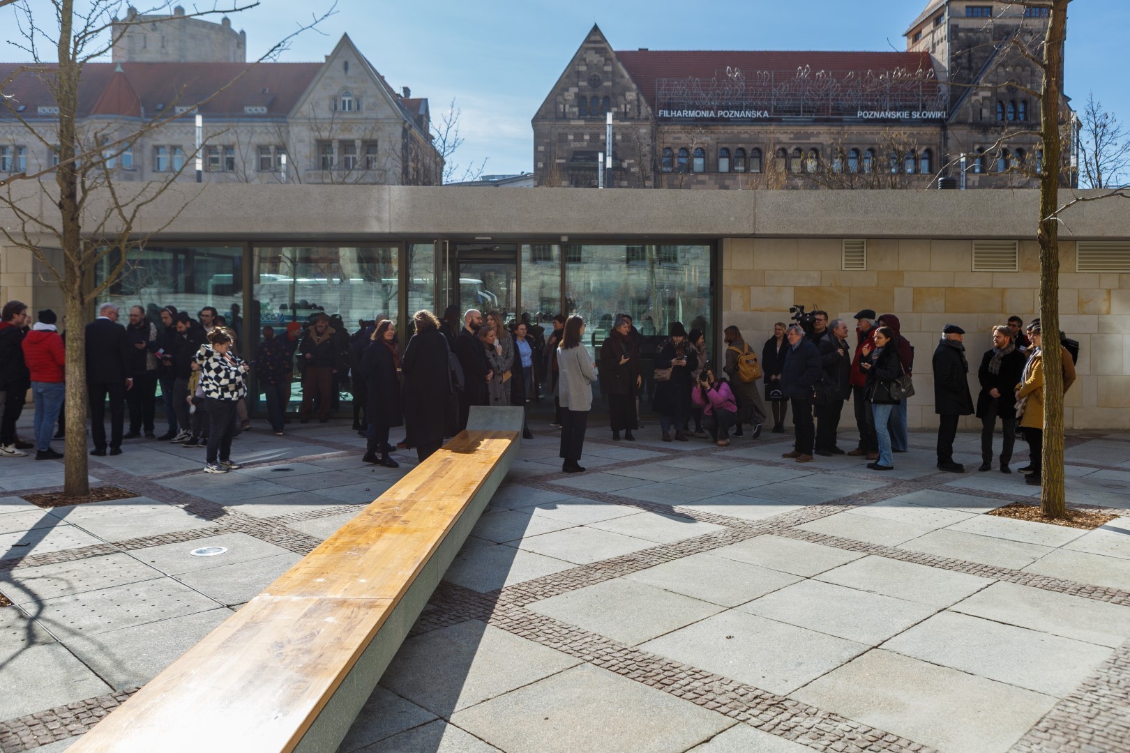 Na Otwartym Dziedzińcu przed Zamkiem Prezydent Poznania Jacek Jaśkowiak oraz Dyrekcja Centrum Kultury ZAMEK – Anna Hryniewiecka i Zofia Starikiewicz powitali zaproszonych gości, gościnie, dziennikarzy i dziennikarki. Po oficjalnej części wydarzenia, Maria Fenrych z Działu Projektów Interdyscyplinarnych CK ZAMEK, zaproponowała zgromadzonym krótkie oprowadzanie po najważniejszych punktach nowego dziedzińca, opowiadając o zastosowanych innowacjach.