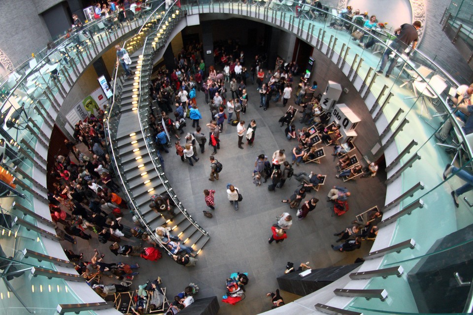 Przestronne Atrium uzyskało swój kształt w czasie przebudowy Kompleksu Sali Wielkiej w latach 2010‒2012. To wtedy modernistycznie wnętrza z lat sześćdziesiątych zmieniły się w znaną nam dziś główną przestrzeń działań Centrum Kultury ZAMEK, z Salą Wielką, Salą Wystaw i Salą Kinową. Największa z nich to Sala Wielka. W niej znajdowała się niegdyś cesarska Sala Tronowa. Rozebrana przez nazistów, nigdy nie wróciła do swojej pierwotnej roli. Przestrzeń tę odbudowano w latach sześćdziesiątych w efektownym, modernistycznym kształcie jako Salę Wielką – przestrzeń kinowo-widowiskową. Nowoczesne wymogi co do technicznych możliwości sal koncertowych zmusiły do podjęcia decyzji o kolejnej przebudowie, w latach 2010‒2012. To wtedy Sala Wielka zyskała swój dzisiejszy wygląd.