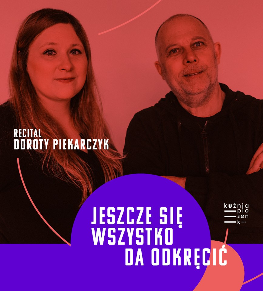 Na grafice widnieją dwie osoby – kobieta i mężczyzna – patrzący w stronę obiektywu. Całość utrzymana jest w czerwono-fioletowej kolorystyce. Po lewej stronie umieszczony jest napis: Recital Doroty Piekarczyk Na dole, na fioletowym tle, widnieje hasło: Jeszcze się wszystko da odkręcić. W prawym dolnym rogu znajduje się logo Kuźni Piosenki.