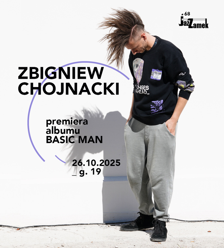 W październiku zapraszamy na kolejną odsłonę cyklu „JazZamek” – koncert Zbigniewa Chojnackiego promujący nowy album „Basic Man”. Siedem piosenek tworzy spójną opowieść o nieoczekiwanym świecie. Jeśli chcesz przeżyć przygodę, która Cię odmieni; potrzebujesz się otworzyć i niczego nie oczekiwać, ten koncert jest dla Ciebie. To będzie prawdziwa przygoda!