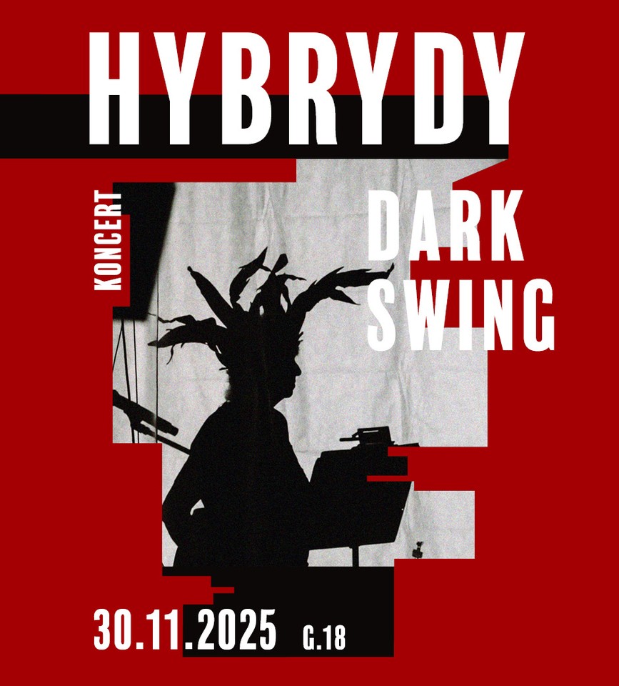 Dark Swing to projekt muzyczny, w którym 9-osobowy big band HYBRYDY wykonuje piosenki oparte na celnych, niepozbawionych ironii tekstach i wizualnej wyobraźni Izabelli Gustowskiej. Dark Swing czerpie z ducha swingu – muzyki, która w latach 30. XX wieku była zarówno przestrzenią nieskrępowanej ekspresji, jak i głosem oporu wobec systemów totalitarnych. Grany nielegalnie w klubach przeciwników hitleryzmu i w tajnych zrzeszeniach po wojnie, swing staje się dziś punktem odniesienia do świata na nowo rozdzieranego kryzysami – wojną, pandemią, zmianami klimatycznymi.