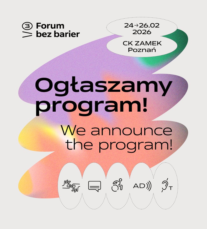 Program Forum skupia się na skalowaniu dostępności – pokazuje, jak lokalne innowacje społeczne, takie jak Kino bez barier, mogą przekształcać się w rozwiązania systemowe na poziomie krajowym i europejskim. W programie znajdą się panele dyskusyjne i rozmowy eksperckie, warsztaty praktyczne, warsztaty foresightowe, prezentacje dobrych praktyk wyłonionych w Open Callu, a także spotkania eksperckie 1:1.